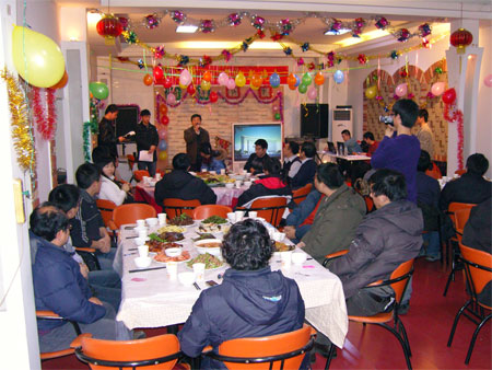 聯歡晚會氣氛異常熱烈,內容準備充分,游戲新穎,。有新員工自我介紹、新入所研究生自我介紹、游藝、小舞劇、歌曲、插播廣告、抽獎等各環節,并將參加晚會人員分成四隊,形成紅、黃、綠、藍隊,使每個人都有參與的機會,臺上臺下形成了互動。尤其是我所在讀研究生表演的小舞劇《包青天公審采花賊》,節目新穎,富有時代氣息,令人忍俊不止。游戲《你畫我猜》反映出了年輕人的睿智。《短信達人》更具特色,讓人耳目一新。聯歡晚會現場充滿了歡樂祥和的氣氛。