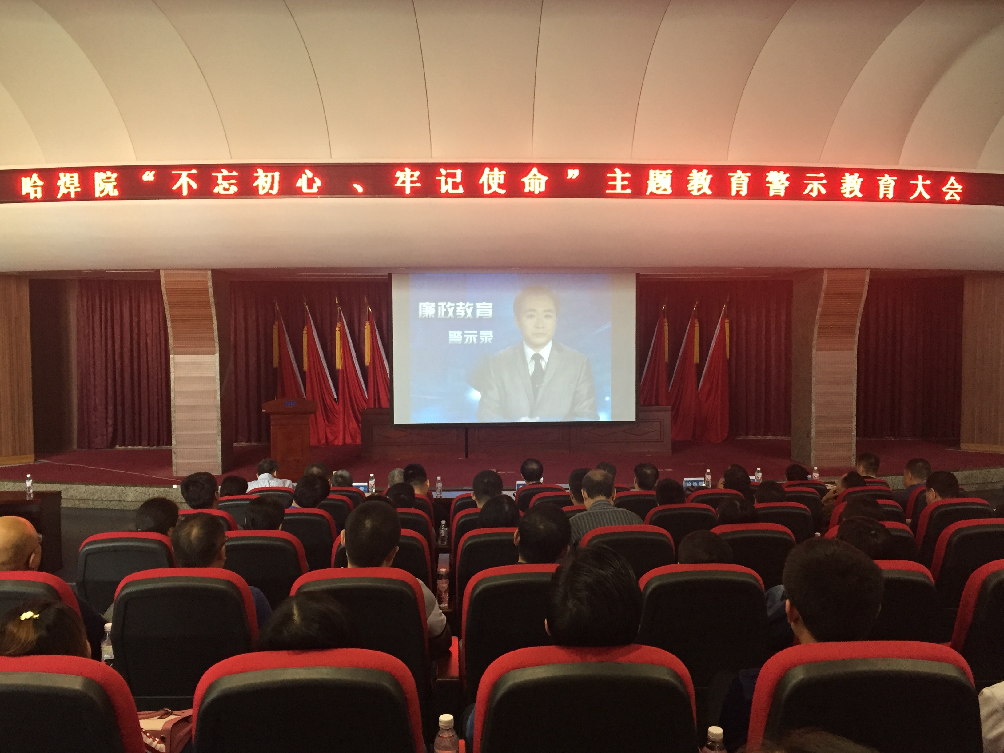 按照哈焊院“不忘初心、牢記使命”主題教育工作推進計劃安排,為保持廣大黨員干部為民務實清廉的政治本色,警鐘長鳴,知敬畏、存戒懼、守底線,公私分明,營造哈焊院風清氣正的政治生態,哈焊院黨委于8月20日在學術報告廳召開警示教育大會,會議由哈焊院黨委副書記、紀委書記儲繼君主持,哈焊院領導班子成員、中層干部、全體黨員參加會議。