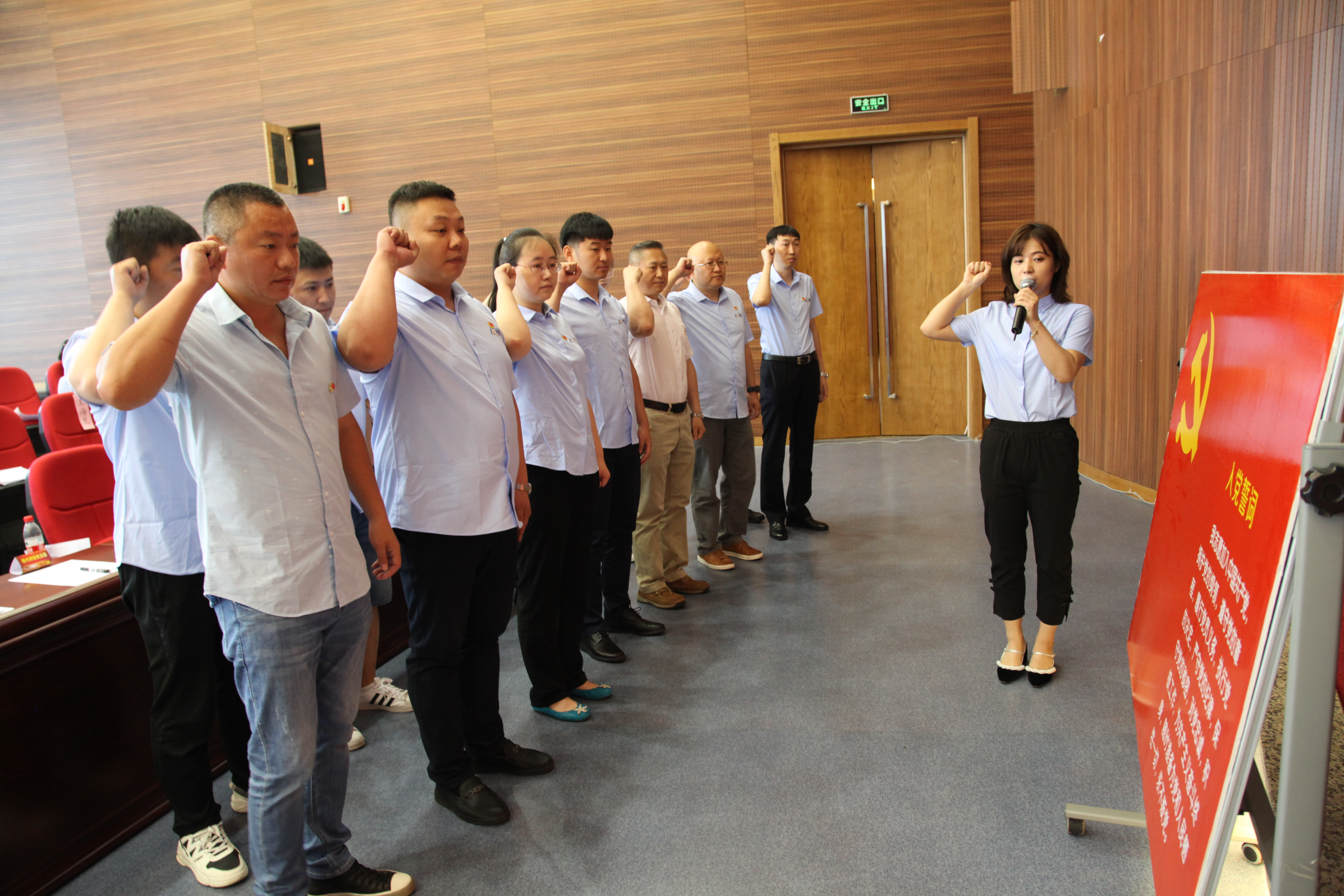 會(huì)議在莊嚴(yán)國歌聲中拉開序幕。2020、2021年新發(fā)展的黨員高舉右拳莊嚴(yán)宣誓,鏗鏘有力的誓言表達(dá)了為共產(chǎn)主義事業(yè)奮斗終身的決心。隨后,黨委委員、副總經(jīng)理雷振代表黨委宣讀了先優(yōu)表彰決定,領(lǐng)導(dǎo)班子成員為受到表彰的先進(jìn)集體和優(yōu)秀個(gè)人頒發(fā)獎(jiǎng)牌。