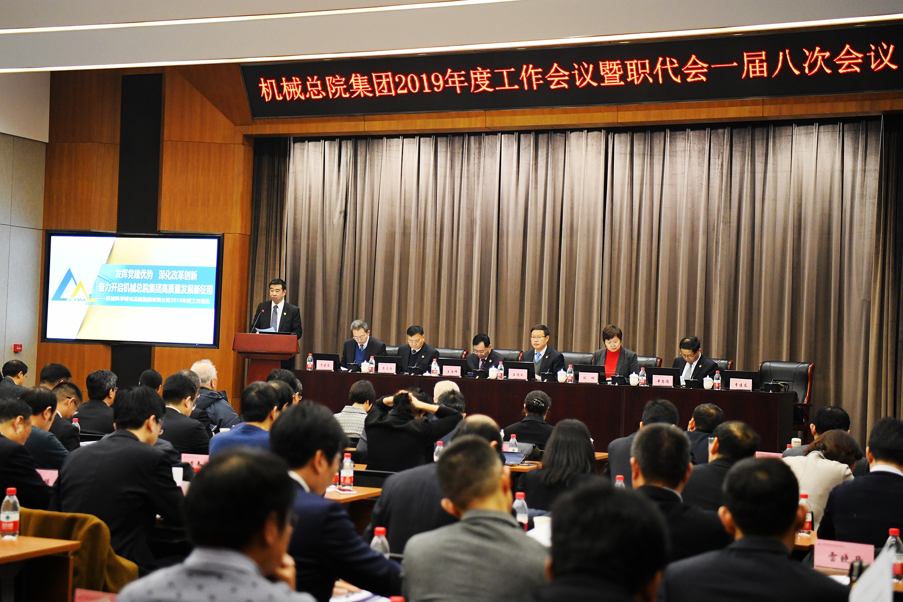 機械總院集團2019年度工作會議暨職工代表大會一屆八次會議于1月18-19日在京召開。國家審計署企業審計五局局長劉珊、副局長彭碧蓮等領導出席會議;機械總院原院長、黨委副書記李新亞、機械總院原黨委副書記、紀委書記王露霞、中國科學院院士徐性初、中國工程院院士陳蘊博出席會議,機械總院集團領導班子成員,總工程師,工會主席,副總師,職能管理部門負責人,各單位領導班子成員、工會主席,總部中層以及集團職工代表參加會議。